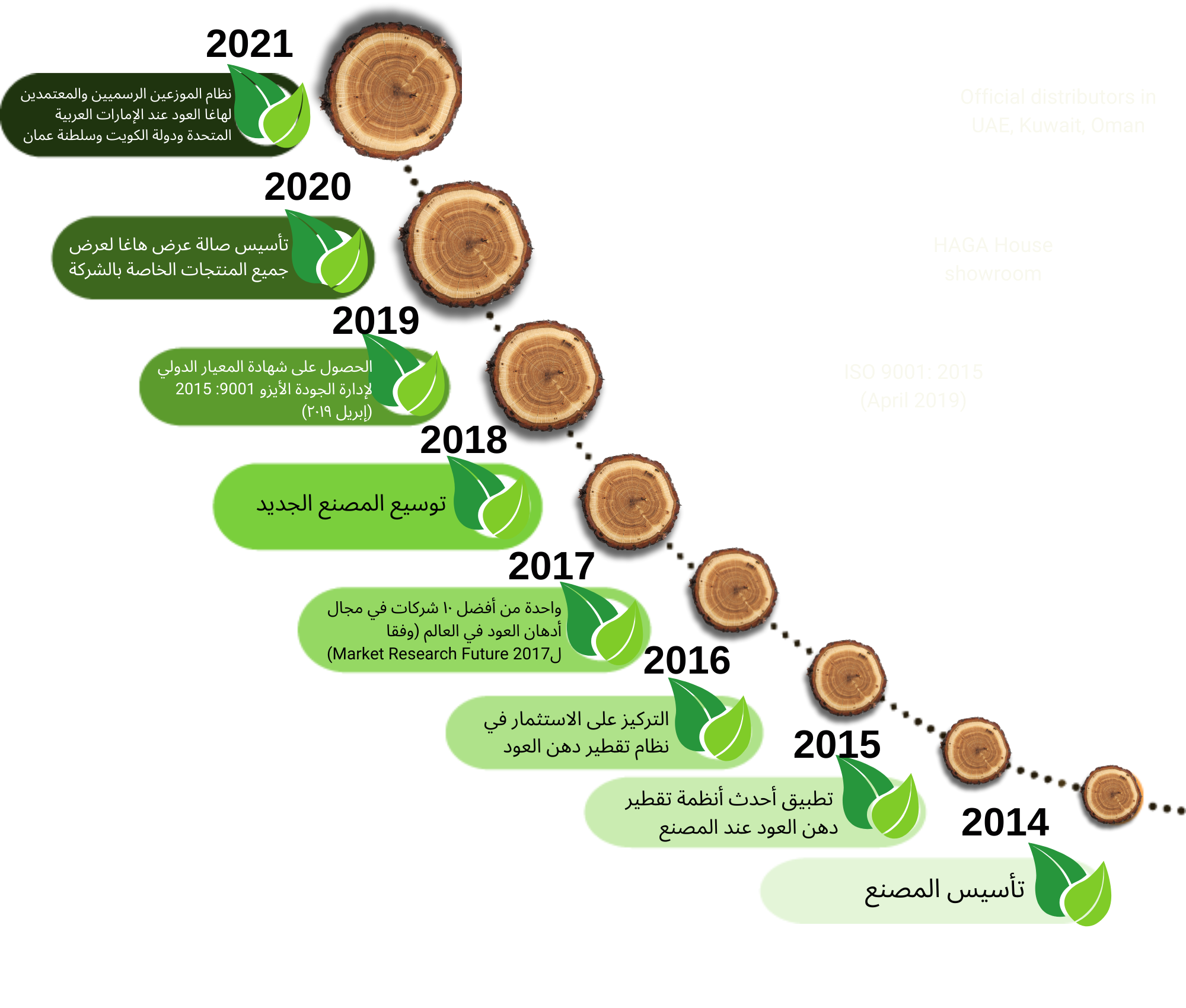 ♦ يتم النمو عن تطور شركتنا من خلال توسعنا في نطاق الإنتاج مع مجموعة متنوعة من الخدمات وخطوط الإنتاج بما في ذلك توريد وزراعة الشتلات، المواد الخام لدهن العود والأنواع من خشب العود، دهن العود لاستعمال مباشرة ولتصنيع العطور الراقية، وخشب العود الفني وغيرها.