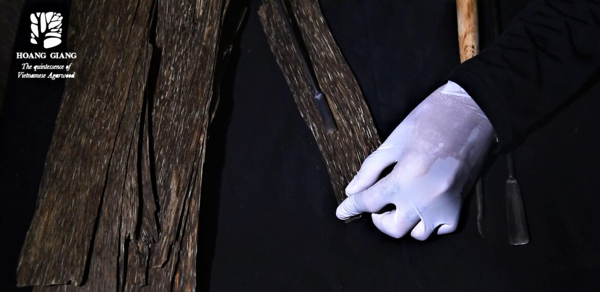 يتم تقشير هاغا رقائق العود من اللحاء المصاب داخل أشجار أكيلاريا كراسنا الفيتنامية، ثم يتم معالجتها بواسطة الحرفيين المهرة. في الواقع، تكمن رائحة دهن العود في عروق دهن العود داخل الخشب، بينما تشم في الخارج ولا يوجد سوى رائحة خافتة