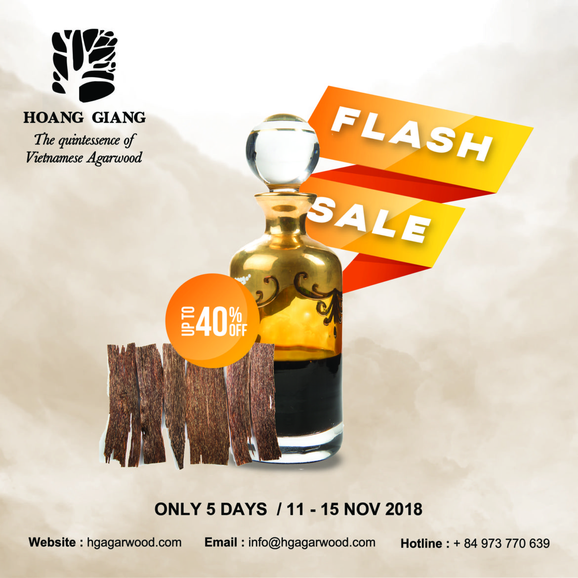 ONLY 05 days: 11/11 – 15/11 in the MOST beautiful season of 2018. Shop sale deals fast! As sincere thanks to our honored customers, Hoang Giang Agarwood Co., Ltd. would like to offer you a special discount policy for all your orders occured from November 11th 2018 to November 15th 2018.