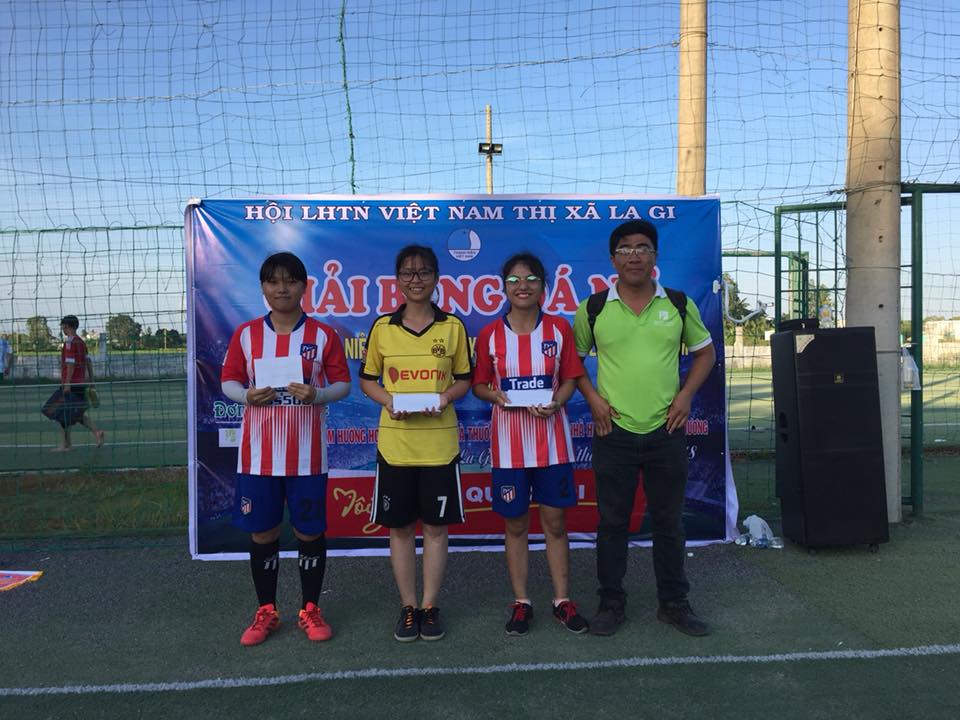 On 13/10/2018, after a day, the competition between 05 – people women football at Mary Khanh stadium, Tan Thien ward, La Gi town has ended successfully. Five teams participated in the tournament: Nguyen Hue high school, Ly Thuong Kiet senior high school, La Gi town hospital, Tan Tien commune unionists and Phuoc Loc ward unionists.